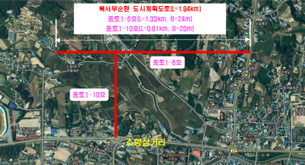 총사업비 424억원이 투입된 북서부 도로는 2017년 실시설계 착수와 주민협의를 시작으로 지난해 협의 보상을 끝냈고 올해 지방토지수용위원회 수용재결 심리를 거쳐 지난달 4일 법원에 보상비 공탁을 완료했으며 현재 공사 발주를 위한 행정절차를 마무리하고 있다.