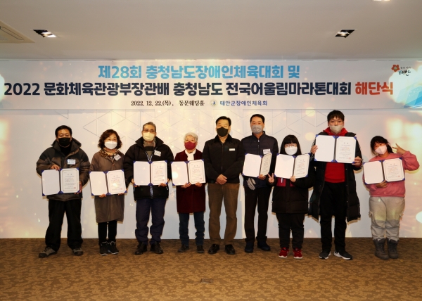 [Ytv영상스토리] 태안군이 지난 22일 태안읍 동문웨딩홀에서 가세로 군수와 군의장, 장애인체육회 관계자 등 170여명이 참석한 가운데 ‘제28회 충청남도장애인체육대회 및 2022 문화체육관광부장관배 충청남도 전국어울림마라톤대회 해단식’이 개최됐다고 밝혔다.