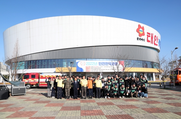 한편 태안군은 지난 11월 23일 태안군 종합실내체육관에서 다중밀집시설 대형화재 상황을 가정한 현장훈련을 실시했으며 태안소방서·태안경찰서·군부대 등 15개 기관·단체 관계자 150여명과 소방·구급차를 비롯한 26대의 장비가 동원되는 등 실제 재난상황을 방불케 하는 훈련을 선보인 바 있다.