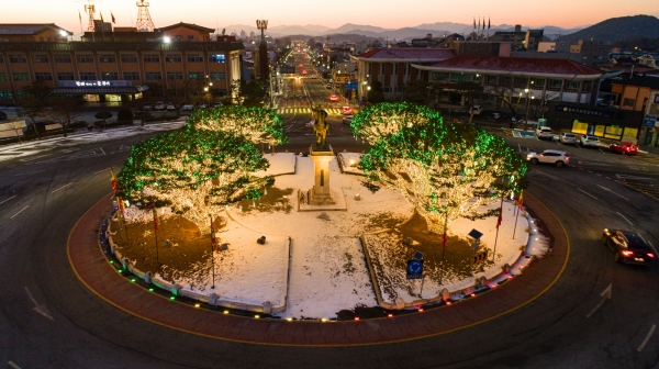 [Ytv영상스토리] 부여군이 연말연시를 맞아 사비로 내 회전교차로 2곳에 조성한 트리 경관조명이 호응을 얻고 있다.