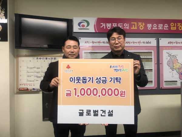 [Ytv영상스토리] 글로벌건설이 지난달 30일 입장면 저소득 가정 대학생에게 전달해 달라며 100만원 장학금을 입장면에 기부했다.