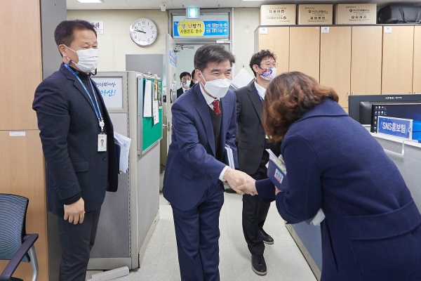 조 부시장은 부서를 방문할 때마다 전 직원들과 일일이 인사를 나눴으며 국·소장, 부서장, 팀장들로부터 부서 주요 현안 사업에 대해 보고받은 뒤 업무상 어려움을 묻고 풍부한 행정 경험을 바탕으로 조언을 아끼지 않았다.