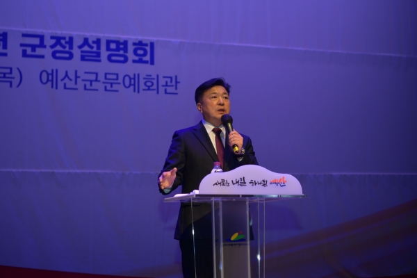 군은 삽교역 건립 옛 충남방적 부지문제 덕산온천 관광호텔 내포∼천안 민자고속도로 내포신도시 종합병원 건립 예산시장 활성화 등에 대한 추진계획을 밝혀 군민의 큰 호응을 얻었다.