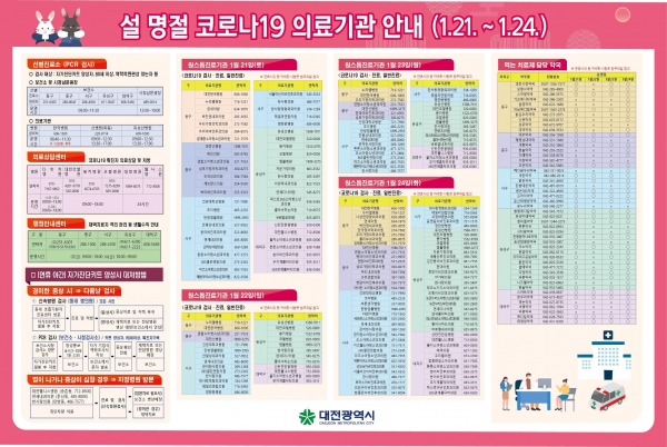 설 연휴기간 문을 여는 의료기관은 시 홈페이지 또는 042-120 콜센터에서 확인 가능하다.